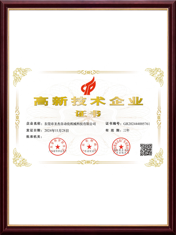 東莞市圣杰自動化機械科技有限公司成立于2010年,座落于電子名鎮(zhèn)——廣東省東 莞市石碣鎮(zhèn),注冊資金800萬,擁有多項發(fā)明專利,實用新型專利,并通過了 ISO9001質(zhì)量管理體系認(rèn)證,經(jīng)過多年的發(fā)展與技術(shù)沉淀,公司已發(fā)展成為一家專 業(yè)從事非標(biāo)自動化設(shè)備研發(fā)、生產(chǎn)、銷售為一體的高新技術(shù)型企業(yè),并在行業(yè)具有 一定的知名度。 圣杰擁有一支高素質(zhì)、高效率且多年從事非標(biāo)自動化設(shè)備研發(fā)與生產(chǎn)的工程技術(shù)團 隊,為客戶提供工程設(shè)計、制造安裝、現(xiàn)場調(diào)試、技術(shù)培訓(xùn)等全方位的自動化設(shè)備 解決方案。主要涉及行業(yè)有:電子連接器行業(yè),建筑五金行業(yè),儀表行業(yè),汽車配 件行業(yè)等。